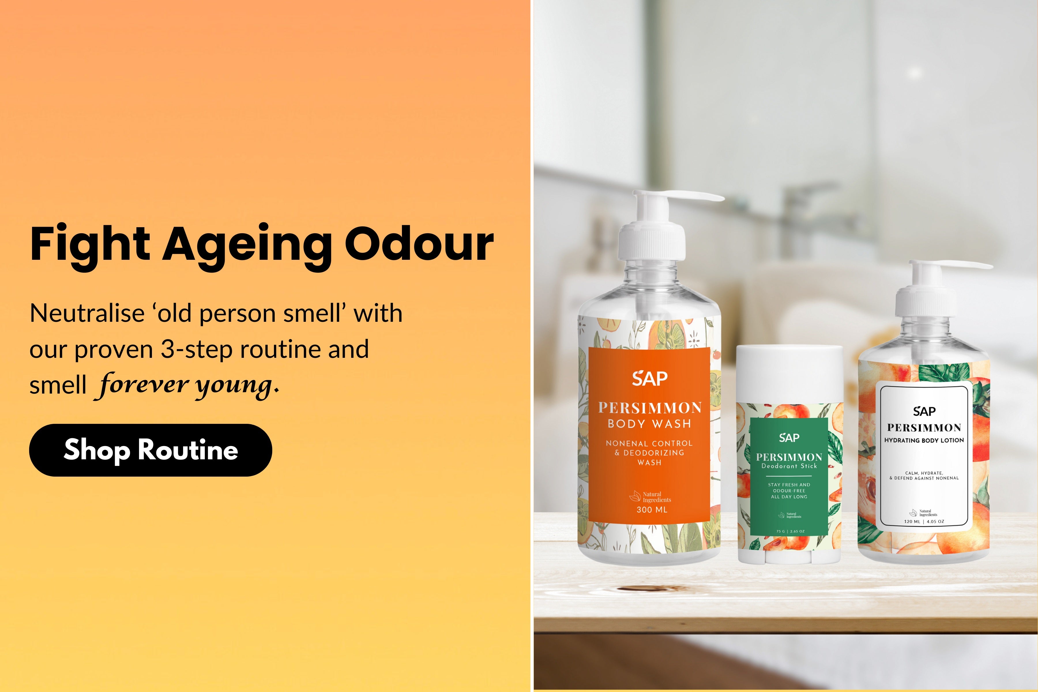 ‘Old person smell’ is a musty odour that clings to clothes, furniture, and lingers in your home. Regular soaps can wash regular body odour, but can't remove this musty scent, or 'nonenal'.